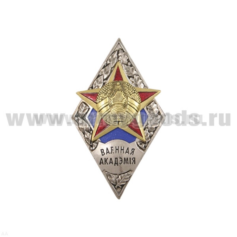 Значок металлический Ромб РБ Военная академия Материал : латуньРазмеры: 27,5*47На закруткеПроизводство РБ Медальерная студия СЭНСтехнологии: чеканка, эмаль